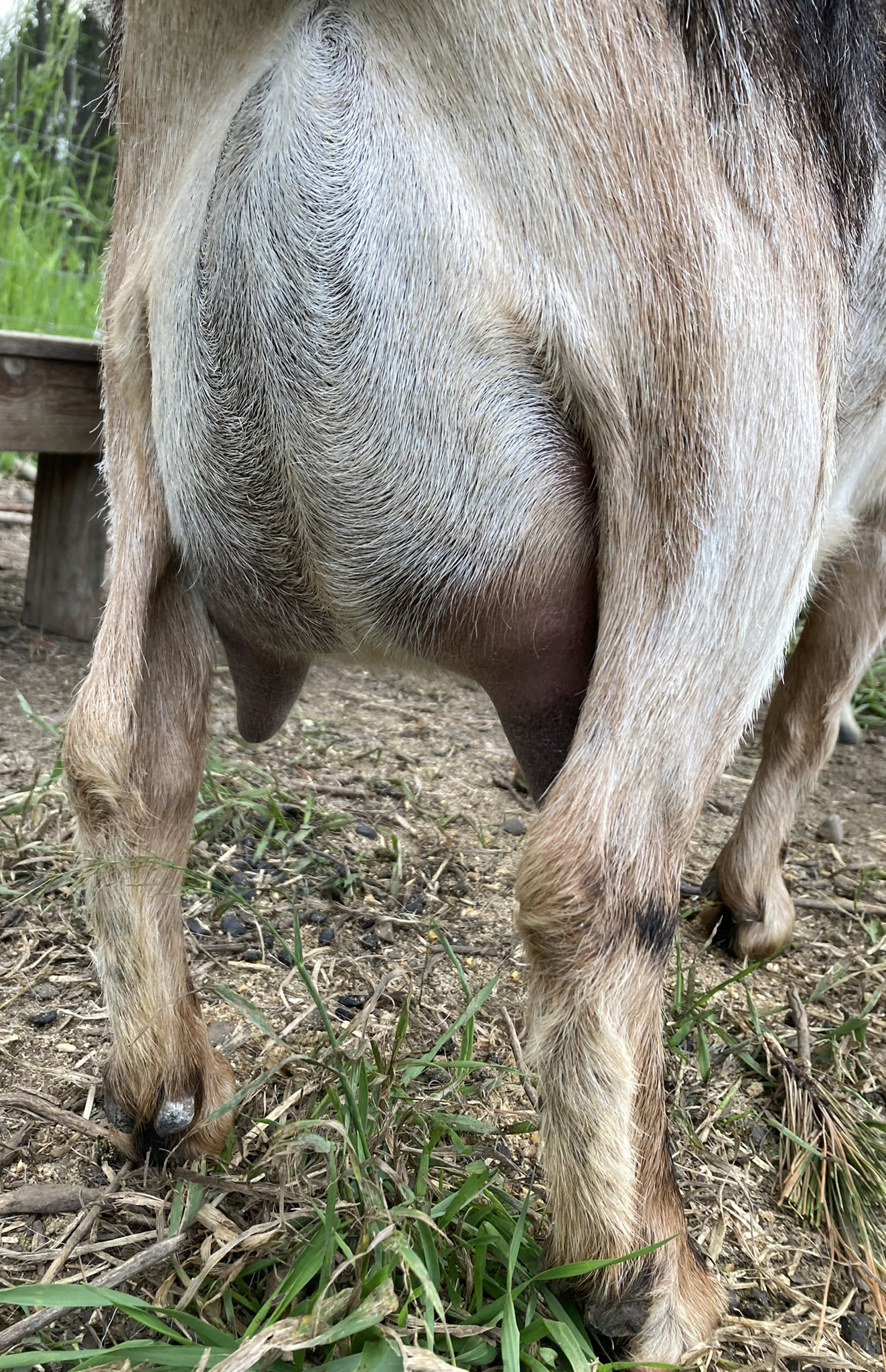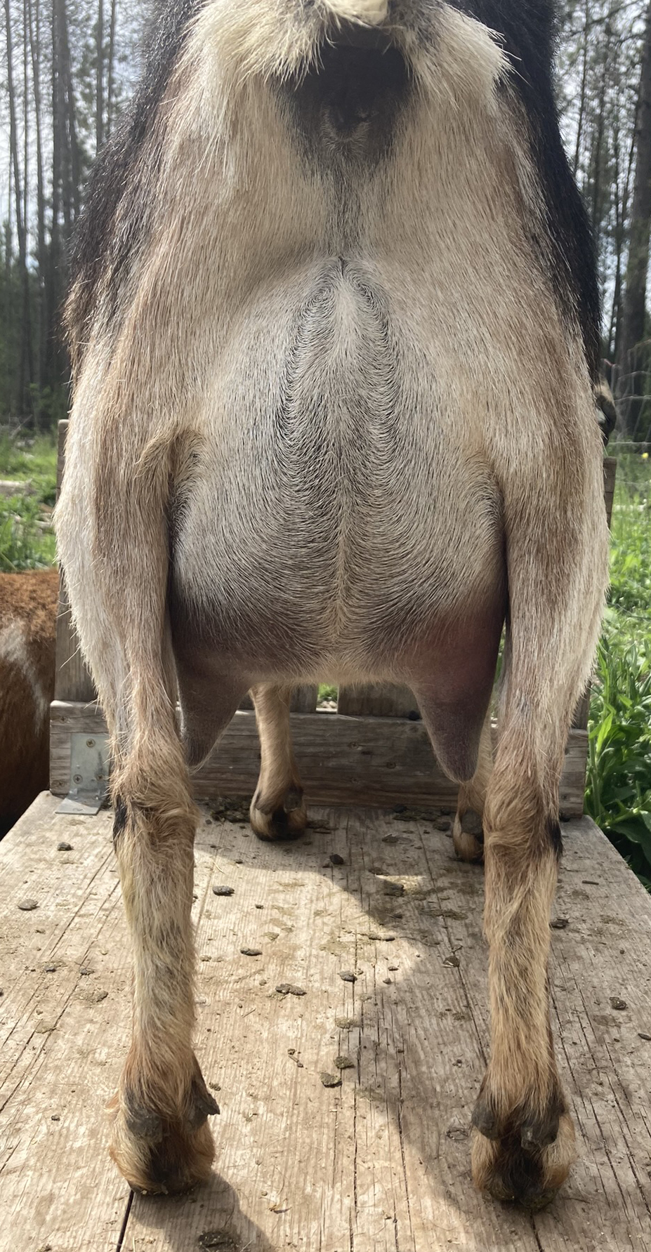 My first registered Mini-Nubian! I started my goat career with three mixed breed doelings, but this is my first registered mini. She's 75% Nigerian/25% Nubian. What a lover! Loves scratches and hugs. Someday I hope to get a couple of does flushed for embryos, I think Annabelle would be a great candidate for carrying embryos to term. Nice long body for smaller kids. Annabelle is also one of my hubby's favorites!