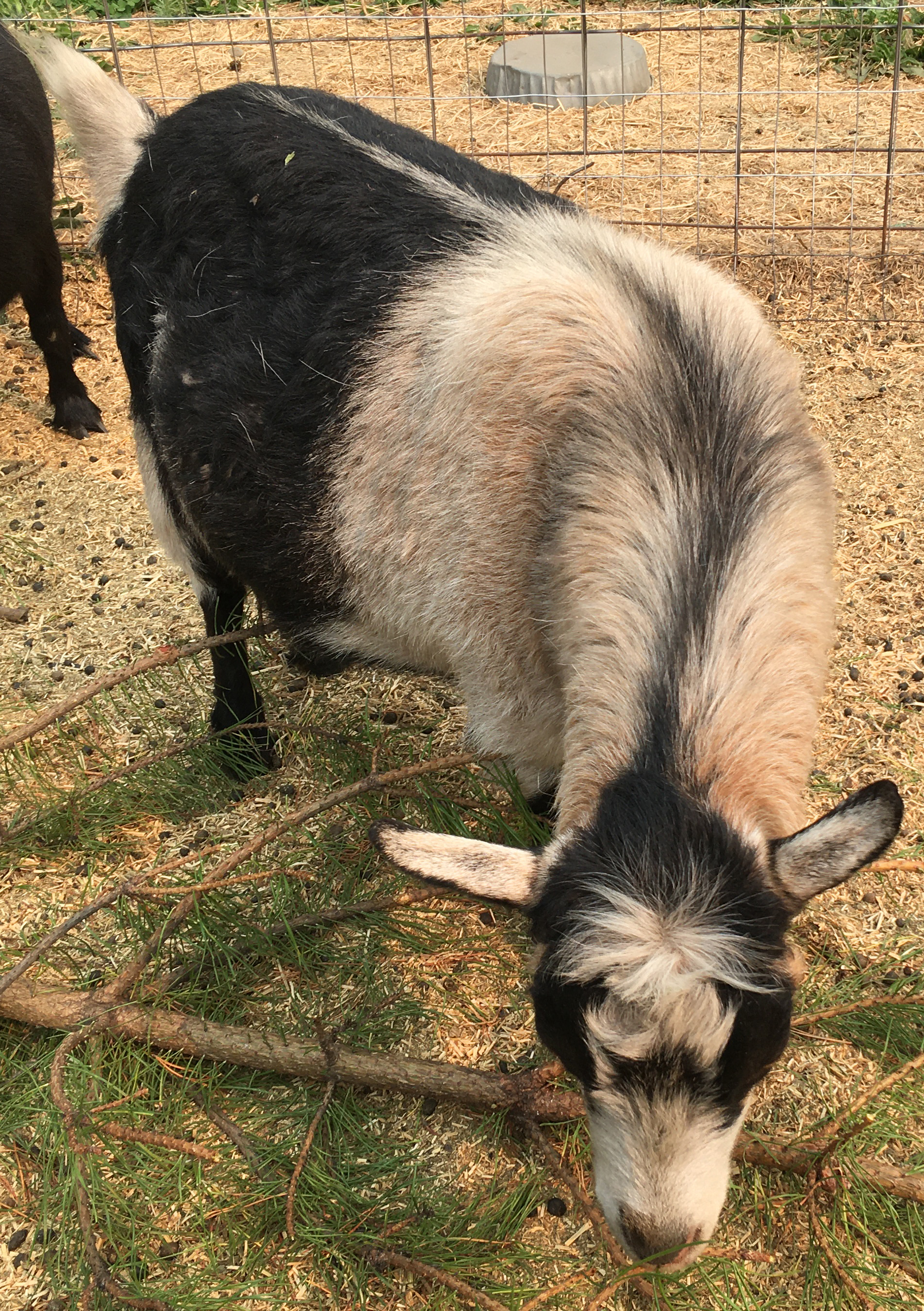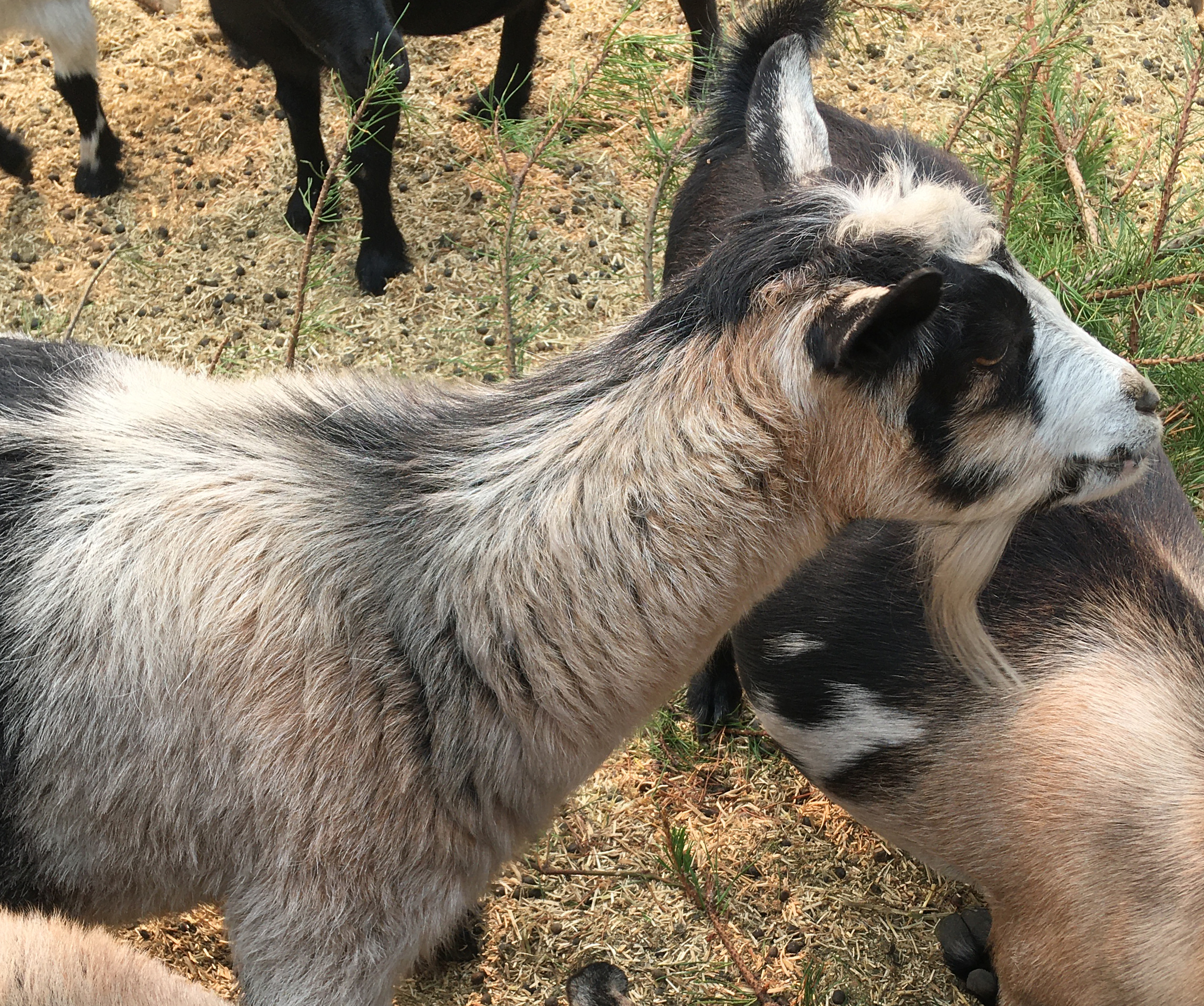 This is a littermate sister to Mistwood PC May Bell, my second daughter out of Top Ten doe Mustang Creek Jingle Bells. I imported her and her mini-nubian daughter Annabelle from Colorado. Back home in the Northwest :) Ebony Bell isn't sure how she feels about me, but Annabelle is all for attention and is VERY huggable! This means I have the only two daughters of Jingle Bells still producing. Their littermate sister supposedly had a hard kidding and is retired to pet status.